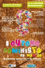 O próximo día 22 de outubro terá lugar o OUTONO FEMINISTA EN MONDOÑEDO, o I Encontro Feminista que terá lugar na Mariña de Lugo. Dende o Observatorio da Mariña pola Igualdade queremos realizar unhas xornadas de debate e culturais, un encontro para todas e todos no que se poña en valor o traballo desenvolto polas mulleres galegas no ámbito cultural, entendendo a cultura como factor dinamizador dun pobo, dunha sociedade, tanto no aspecto económico -pola riqueza que crea e xera no territorio- como de formación da cidadanía nunha serie de valores.