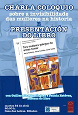 E como peche das actividades do mes de abril, adicado aos libros e charlas sobre a situación e a historia das mulleres, tivemos o martes 24 na Casa das Letras de Ribadeo a presentación do libro Tres mulleres galegas de armas tomar: María Balteira, María Castaña e María Soliña (Baía Edicións), de Guillermina Domínguez e Felicia EstévezFoi un  privilexio  contar coas autoras para a presentación do libro que, ademais, aproveitaron para facernos unha pequena presentación sobre a invisibilidade das mulleres na historia e na arte