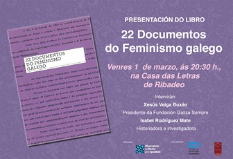 E no Observatorio estreamos o mes de marzo cunha nova presentación. O próximo venres 1 de marzo, ás 20.30h na Casa das Letras de Ribadeo, terá lugar a presentación do libro “22 documentos do feminismo galego“, da Fundación Galiza Sempre.